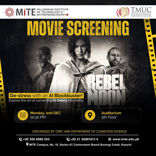 Students unwound with an epic AI-powered sci-fi screening of Rebel Moon at the MiTE Auditorium. A perfect blend of tech, creativity, and action—organized by ORIC and the Department of Computer Science.